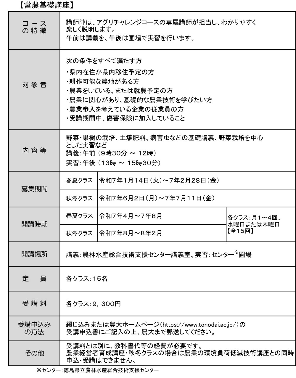 令和7年度 アグリチャレンジコース受講申込書(一覧)