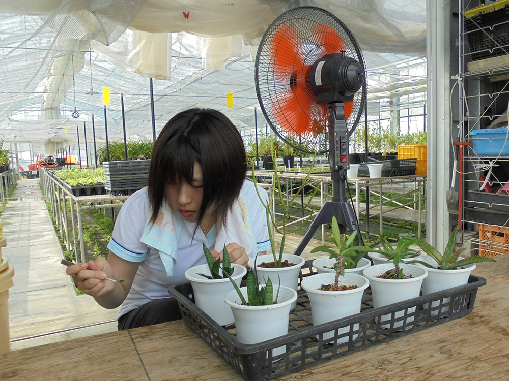 農業大学校は「農業者研修教育施設」という役割に加え、本科は平成23年度から「専修学校」として、農業教育の充実を図ると共に、平成25年度からは、新たな拠点施設において学校施設等を一新して、試験研究機関と一体となった「知の拠点」において、幅広い分野で活躍できる人材を育成しています。平成30年度からは、新たに「6次産業化研究施設」の運用が始まると共に「農業生産技術コース」と「6次産業ビジネスコース」に再編し、新しい時代に適応した人材育成を進めています。