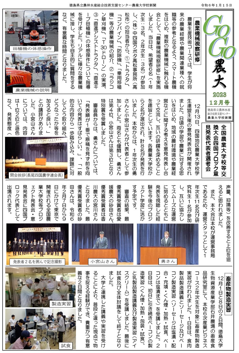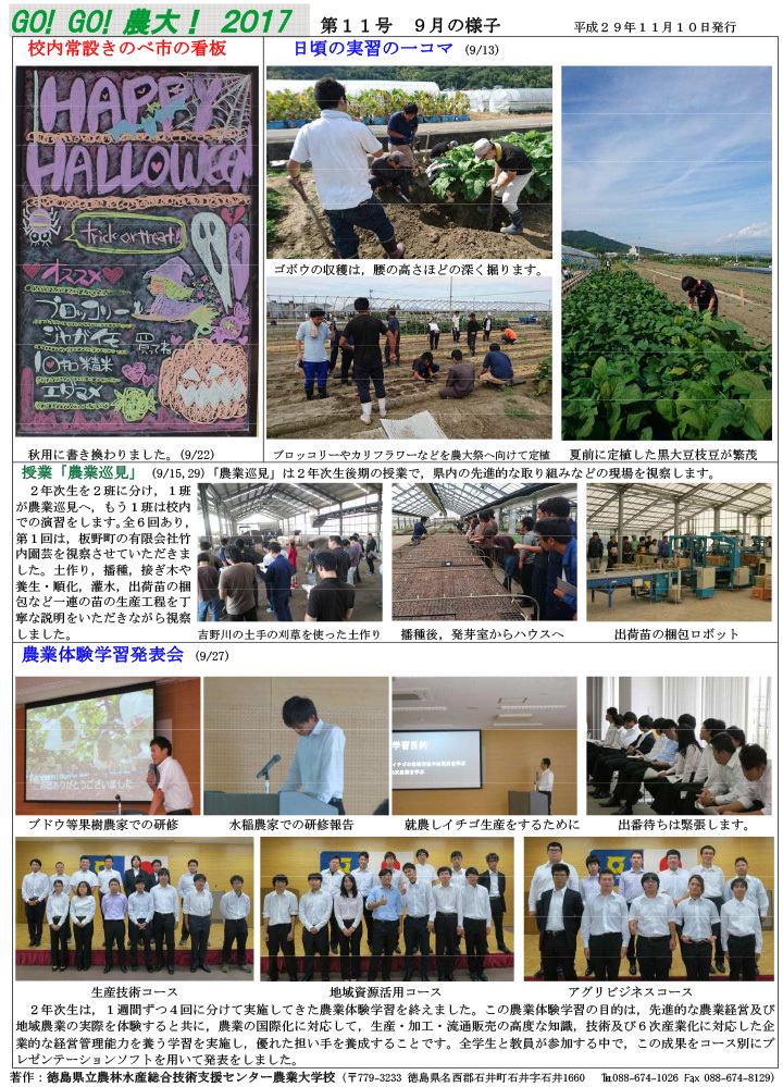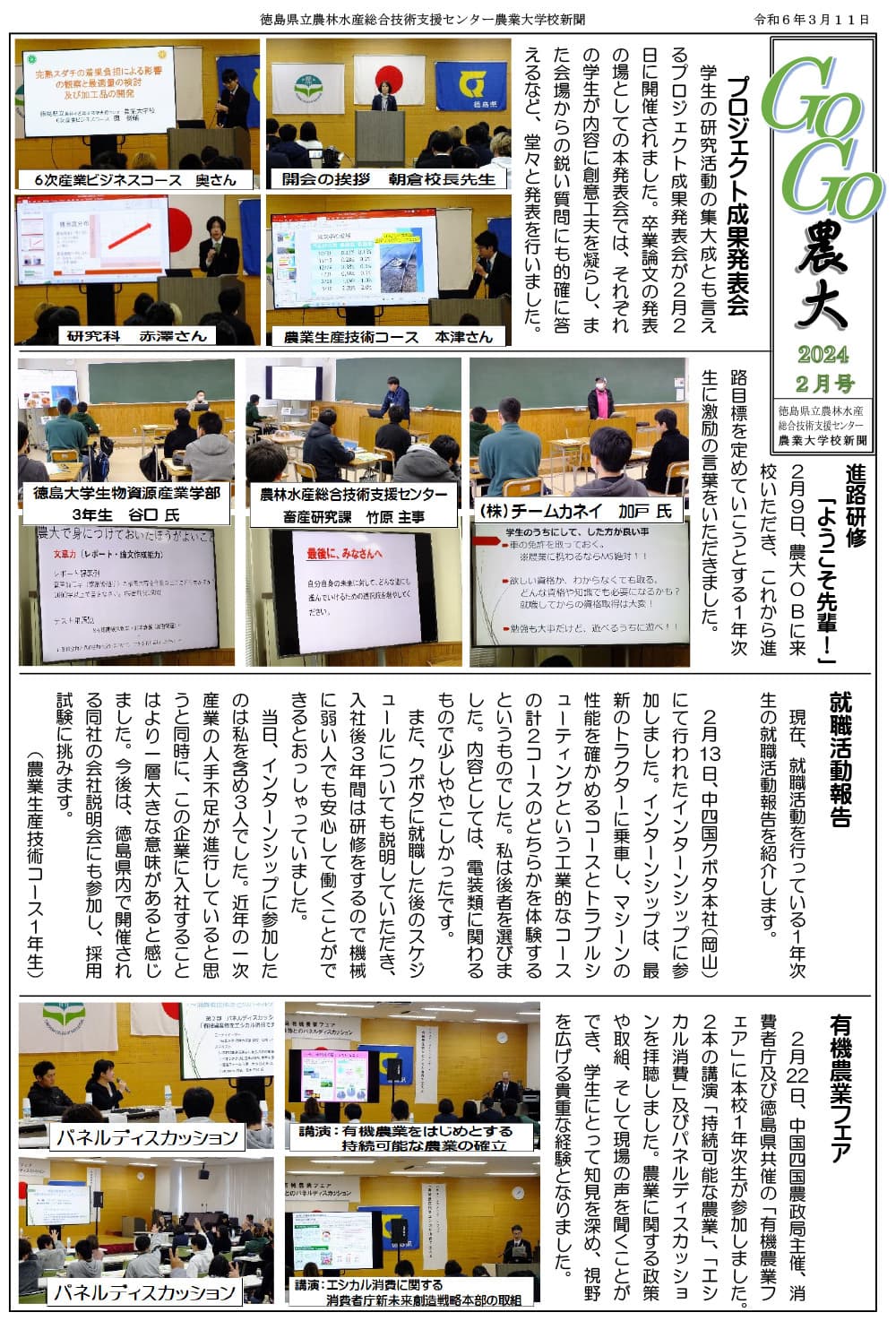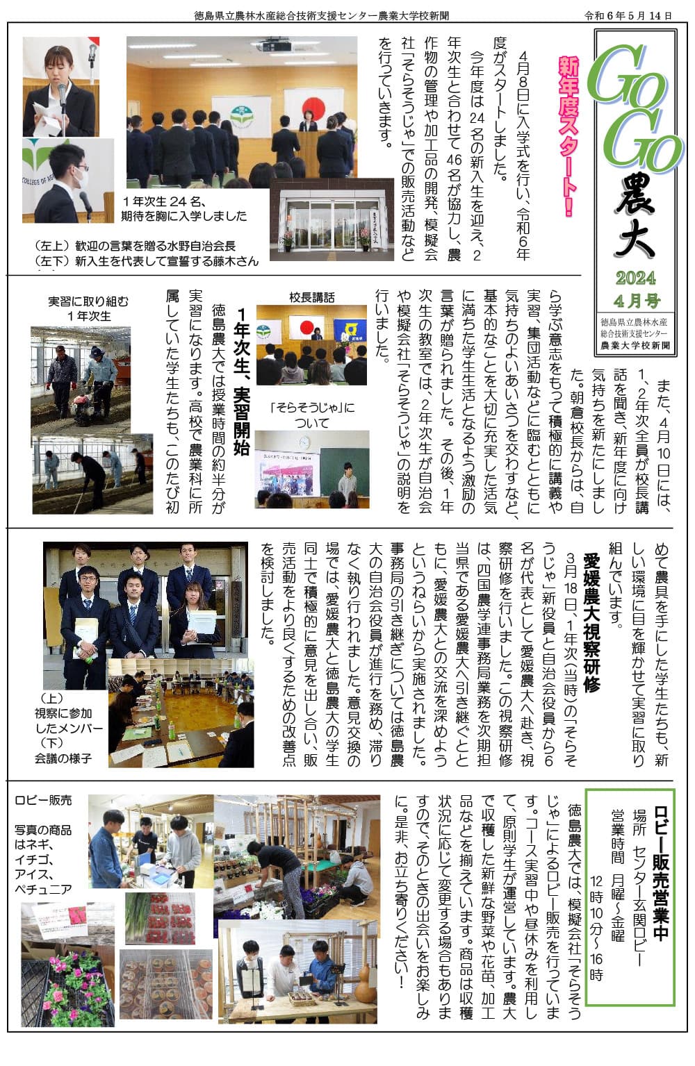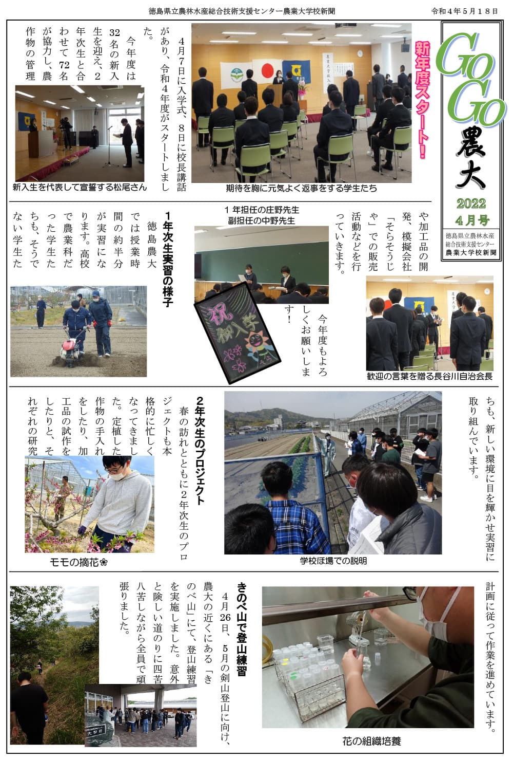 農業大学校の授業風景や作業の様子、イベントや自治会活動などを紹介する農大通信誌「GO!GO!農大!」をほぼ毎月発行しています。当コーナーでは、最新の「GO!GO!農大!」記事を掲載します。また、過去の記事についてもご覧いただけます。