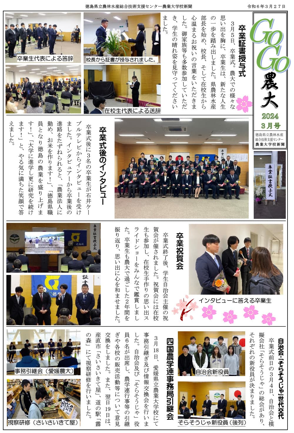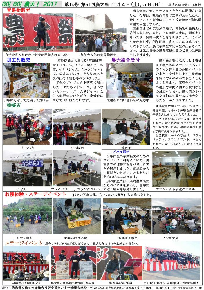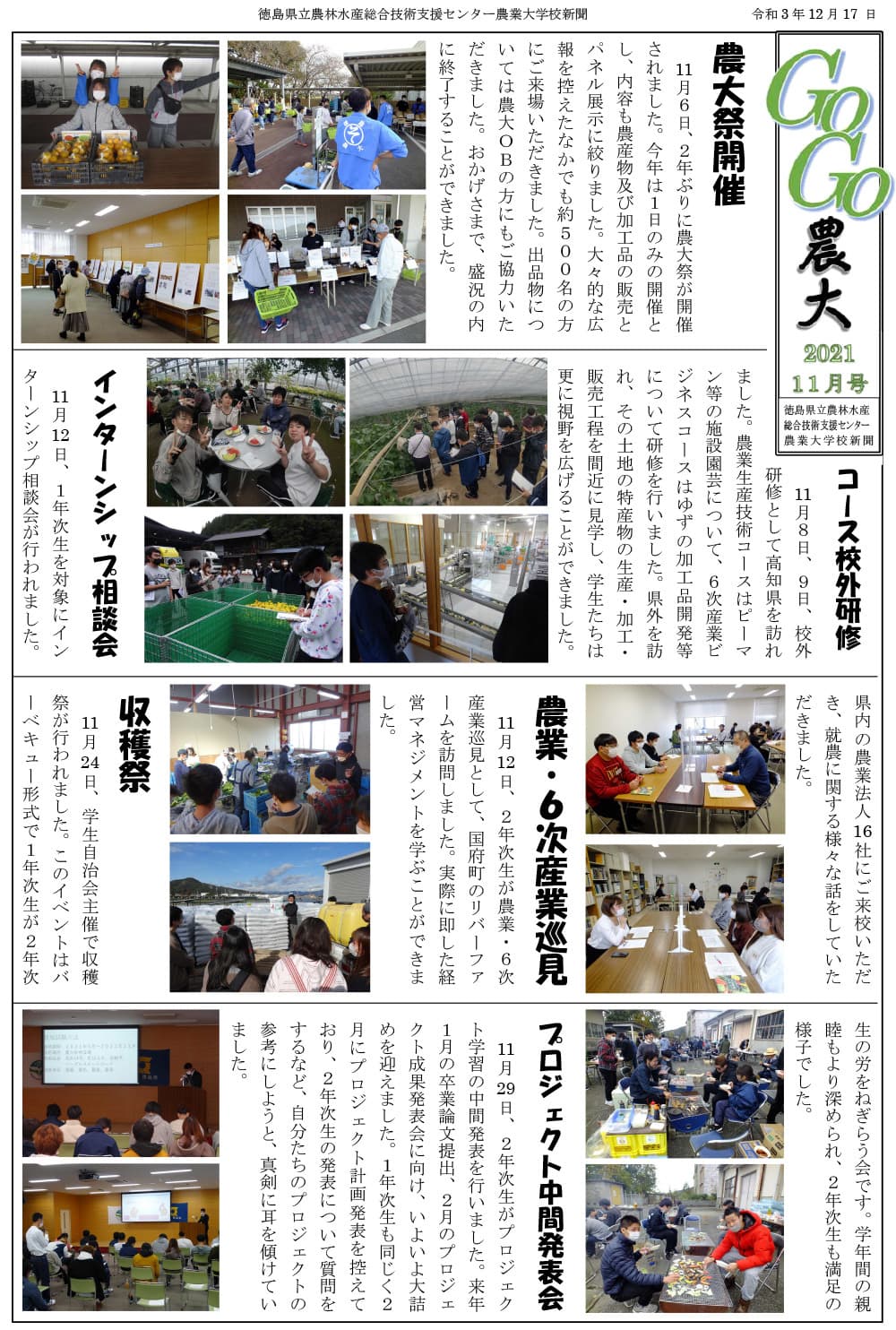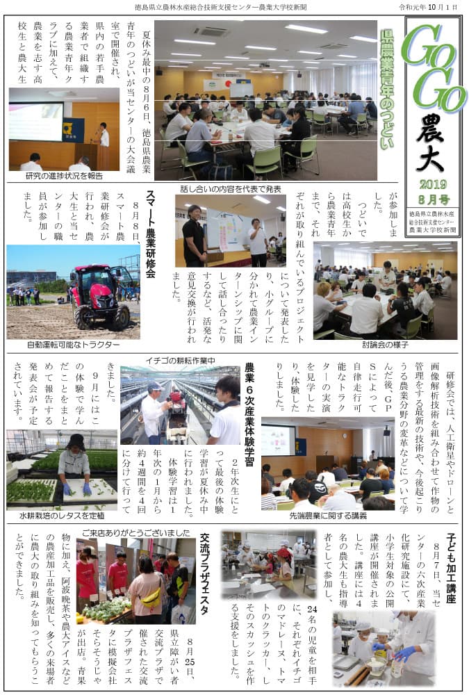 農業大学校の授業風景や作業の様子、イベントや自治会活動などを紹介する農大通信誌「GO!GO!農大!」をほぼ毎月発行しています。当コーナーでは、最新の「GO!GO!農大!」記事を掲載します。また、過去の記事についてもご覧いただけます。