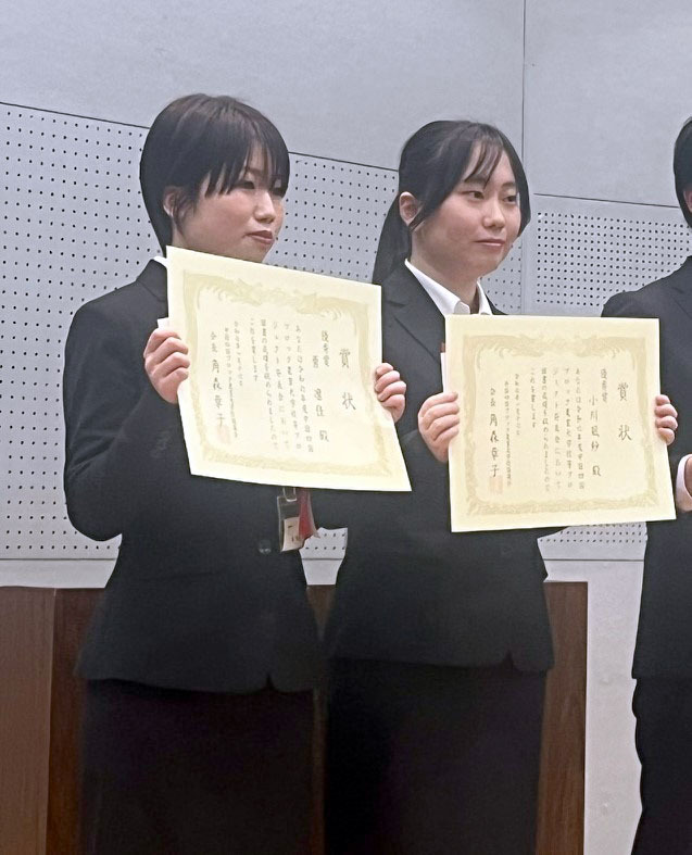 徳島農大からは校内中間発表会を経て選出された6次産業ビジネスコースの勇さん、小川さんの2名が発表し、審査の結果、2名がそろって優秀賞に選ばれました。