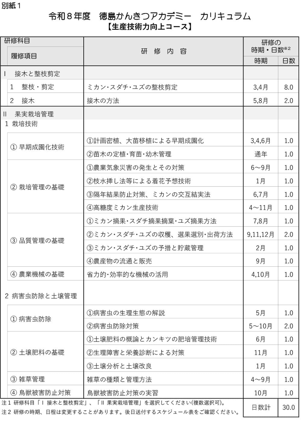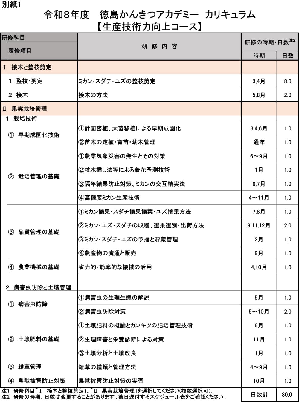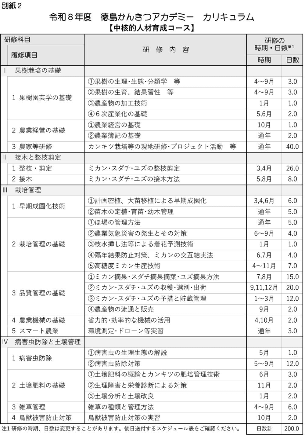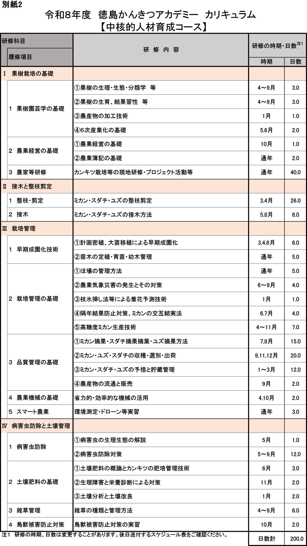 講義(40日程度)、ほ場実習(120日程度)、農家実習(40日程度)
