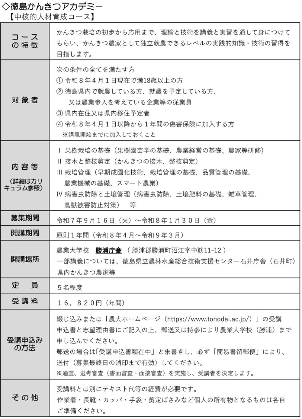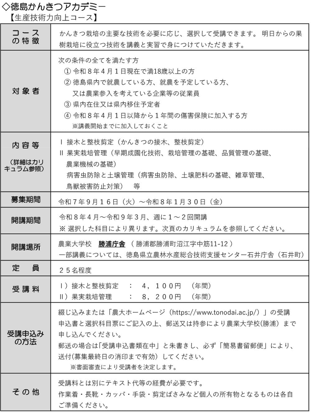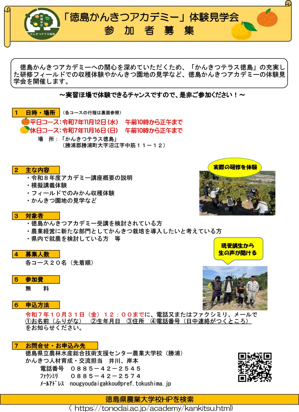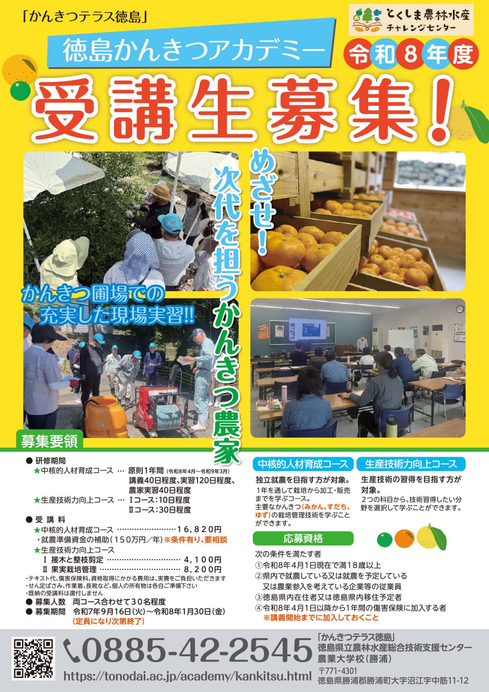 徳島かんきつアカデミー受講生募集のご案内チラシ
