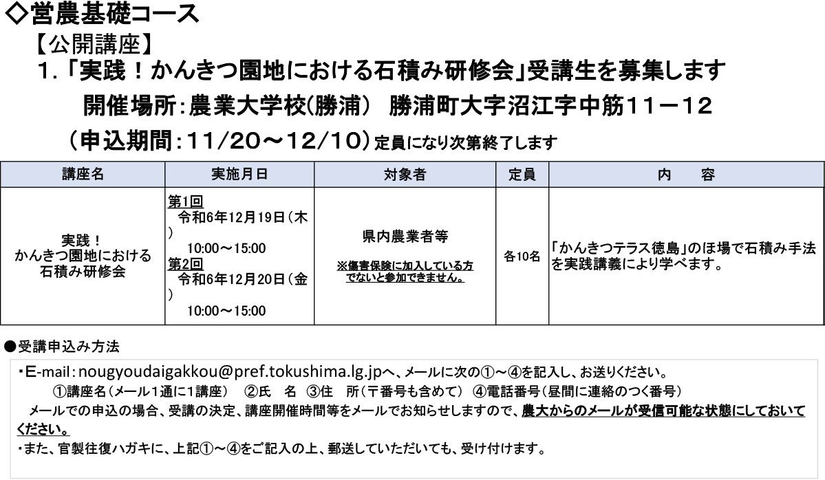 ◎「実践!かんきつ園地における石積み研修会」の受講生を募集します。