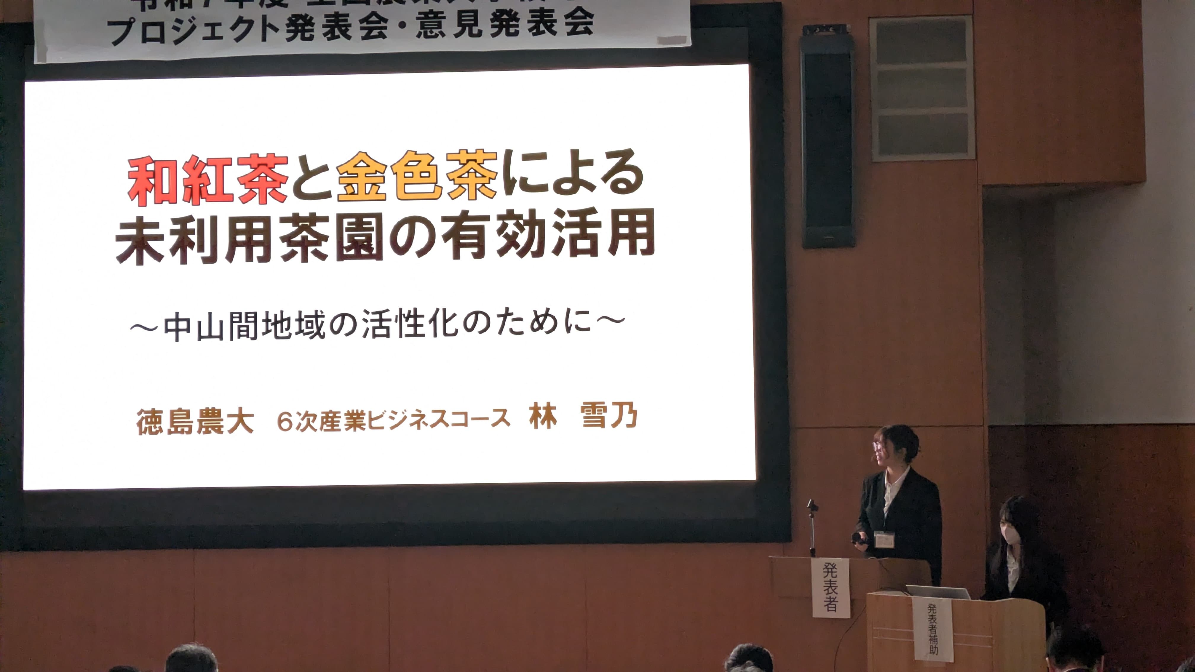 本校からは、校内発表会を経て選出された林さん(6次産業ビジネスコース)と太田さん(農業生産技術コース)の2名が出場。審査の結果、林さんが見事「優秀賞」を受賞しました。